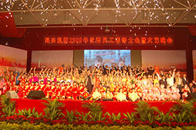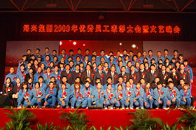 【本報訊】 金牛辭歲寒風盡,白虎迎春喜氣來。2009年12月31日晚,在這個辭舊迎新、星光四熠的己丑歲末晚,潯興員工活動中心大禮堂內張燈結彩、喜氣洋洋,潯興集團2009年優秀員工表彰大會暨元旦文藝晚會在此隆重舉行,集團各公司高管、數千名潯興員工代表與關心支持潯興發展的各級領導嘉賓們在此歡聚一堂,共享潯興2009年的收獲與喜悅,喜迎2010新年的到來。