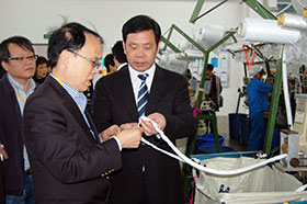 【本報訊】日前,香港生產力促進局訪問團香港晶苑集團主席羅樂風(訪問團團長)、香港生產力促進局項目主任周磊、顧問陳麗貞一行29人蒞臨潯興股份參觀交流。股份公司董事長施能坑、總裁吳樂進、香港公司總經理王鵬程、福建公司生產副總院善明等公司領導在新工業園熱情歡迎,并陪同參觀了尼龍纖維部、精密制造部、方維燦車間、測試中心和樣品室。