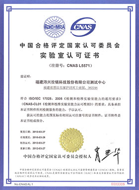 【本報訊】2012年3月27日,福建潯興拉鏈科技股份有限公司測試中心順利通過CNAS實驗室現(xiàn)場評審和資質(zhì)評定,成功獲得CNAS實驗室認可證書,證書編號為No.CNASL5571。潯興測試中心從此躋身國家級實驗室行列,這是繼高新技術(shù)企業(yè)、國家級企業(yè)技術(shù)中心、國家專利工作交流站、全國企事業(yè)知識產(chǎn)權(quán)示范創(chuàng)建單位之后,潯興股份再次榮獲的國家級榮譽。至今,潯興是中國拉鏈行業(yè)唯一一家擁有國家級實驗室的企業(yè)。