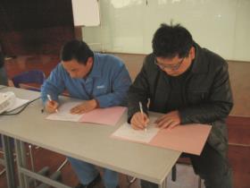 1月9日上午,上海公司成品生產部各車間在公司二樓培訓室舉行《2009年目標責任狀》簽訂儀式,成品生產部張建華經理分別與金屬成品車間、金屬排練車間、尼龍成品車間、尼龍精品車間、塑鋼一車間、塑鋼二車間、尼龍注塑車間各主任簽訂責任狀,生產系統沈副總見證了這一莊重而嚴肅的簽訂儀式。 上海潯興金屬尼龍成品部 蔣成相